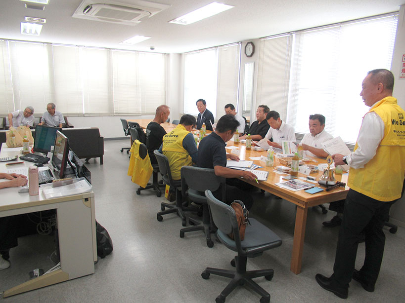 委員会報告では、地区緊急支援・アラート委員長の五味Lより、先週発生した静岡県牧之原市竜巻災害において当クラブからブルーシート・土のう袋の支援物資発送ならびに現地ボランティア参加の報告を悲惨な被害状況を含め報告がありました。ライオンスピーチでは、本道会長から地震・自然災害における災害対策について行政での対応を交えながらのお話をされました。