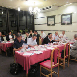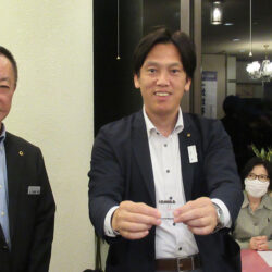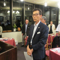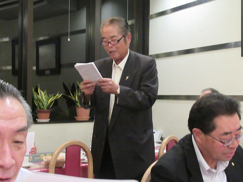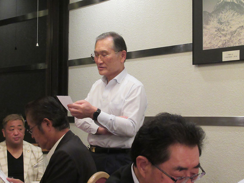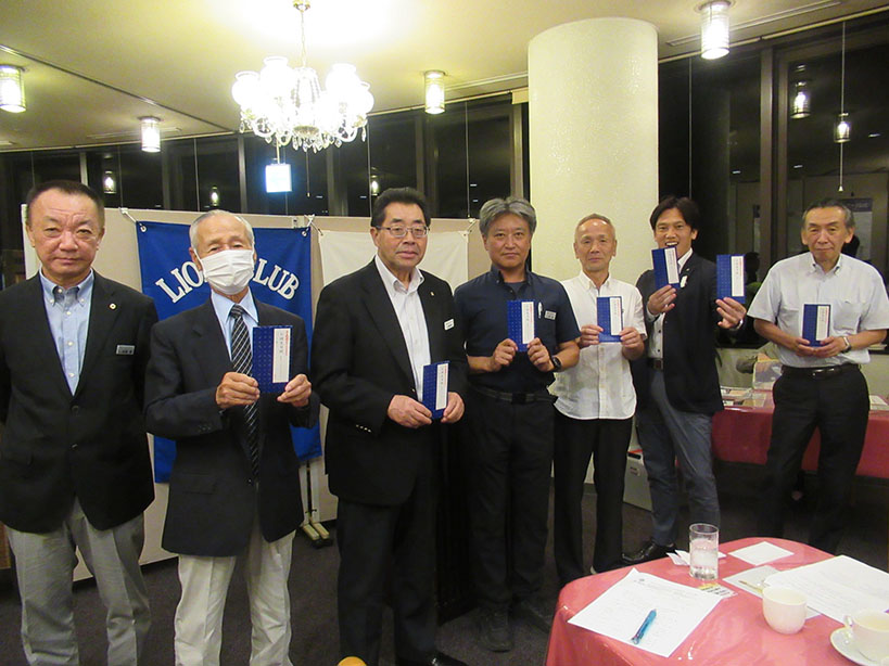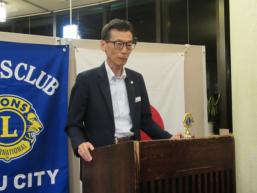 望月Lのライオンズの誓いで開会しました。会長挨拶のあと、前回欠席だった丸山Lにガバナー公式訪問時の記念品をお渡ししました。会食後、副幹事丸山Lの幹事報告では、地区緊急支援・アラート委員会委員長五味Lが静岡県牧之原市竜巻被害において牧之原市社会福祉協議会に支援物資(ブルーシート20枚・土嚢袋50枚)を届けた報告と、クラブ事務所において「スポーツ少年団ミニバスケットボール・ライオンズクラブ杯」の打合せを甲府市ミニバス連盟様と行った報告などがありました。また、今月のお誕生日のお祝いも行いました。メンバースピーチでは望月Lが昨今ニュースで話題になっている自然災害について河川氾濫と内水氾濫をご自身の保険業の観点からお話されました。最後はテールツイスター礒部Lの登場、出席委員長小倉Lの本日の出席についての報告で閉会となりました。