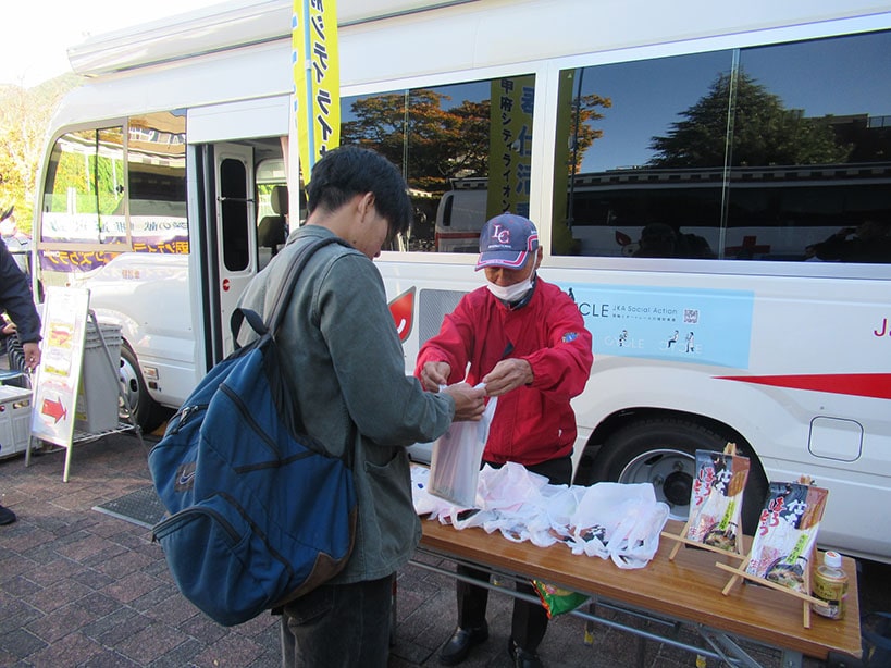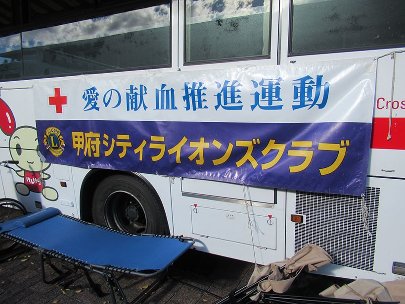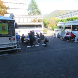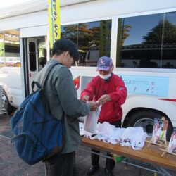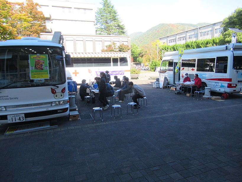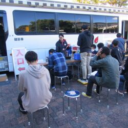 本日は日差しも眩しく、温かい午後でしたが風が強く、冬の到来を感じさせる日中でした。多くの学生がキャンパスを行き来する中、献血協力の声掛けに賛同して頂き献血に参加してもらいました。