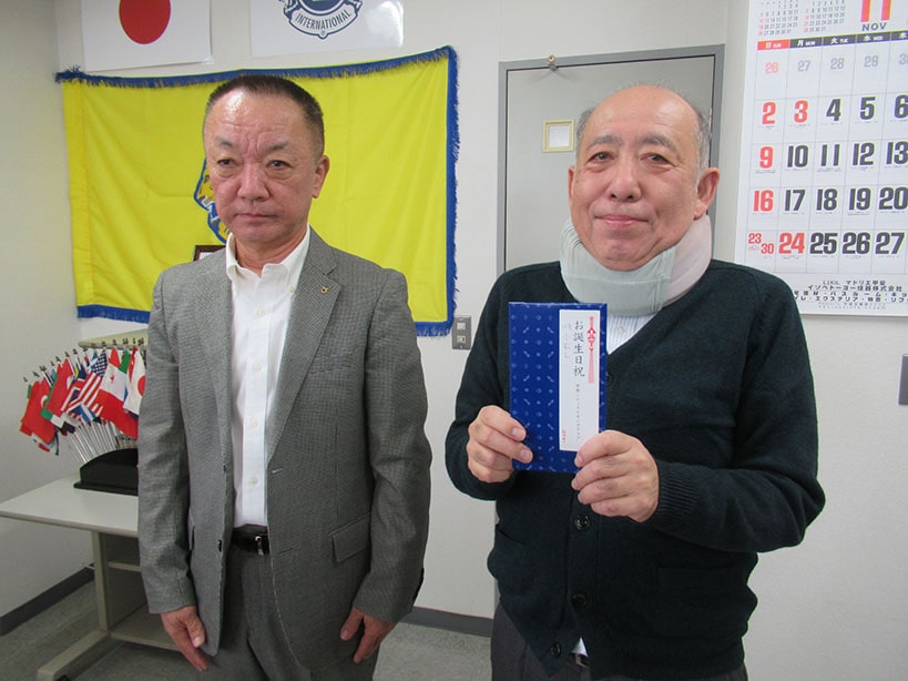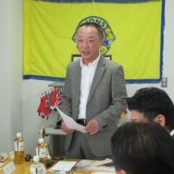 本日の例会には、10Rー1Zゾーンチェアパーソン塩澤満Lとゾーンセクレタリー加々美富明Lが表敬訪問に来て頂きました。本道会長の挨拶のあと、10Rー1Zゾーンチェアパーソン塩澤満Lからもご挨拶を頂戴しました。前回欠席だった小松Lにお誕生日のお祝いをお渡しし、メンバースピーチでは松本Lが全国のライオンズクラブが献血活動と献眼・献腎活動に力を入れている経緯と歴史についてのお話がありました。本日のファイン・ドネーションでは10Rー1Zゾーンチェアパーソンとゾーンセクレタリーの表敬訪問から、出席メンバーから多くのドネーションが出されました。