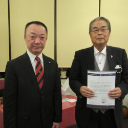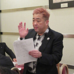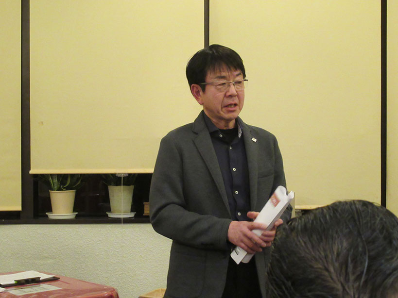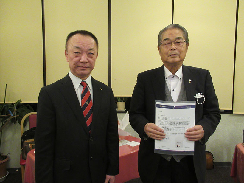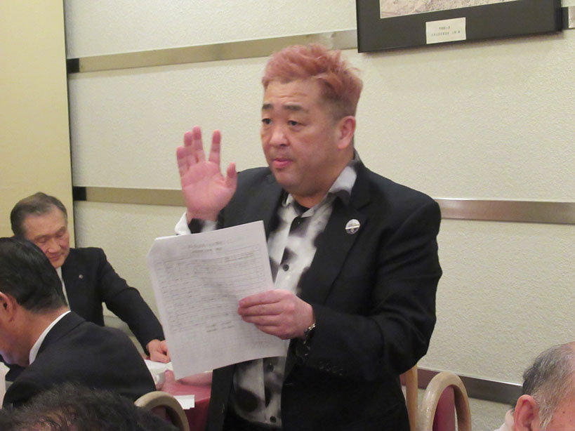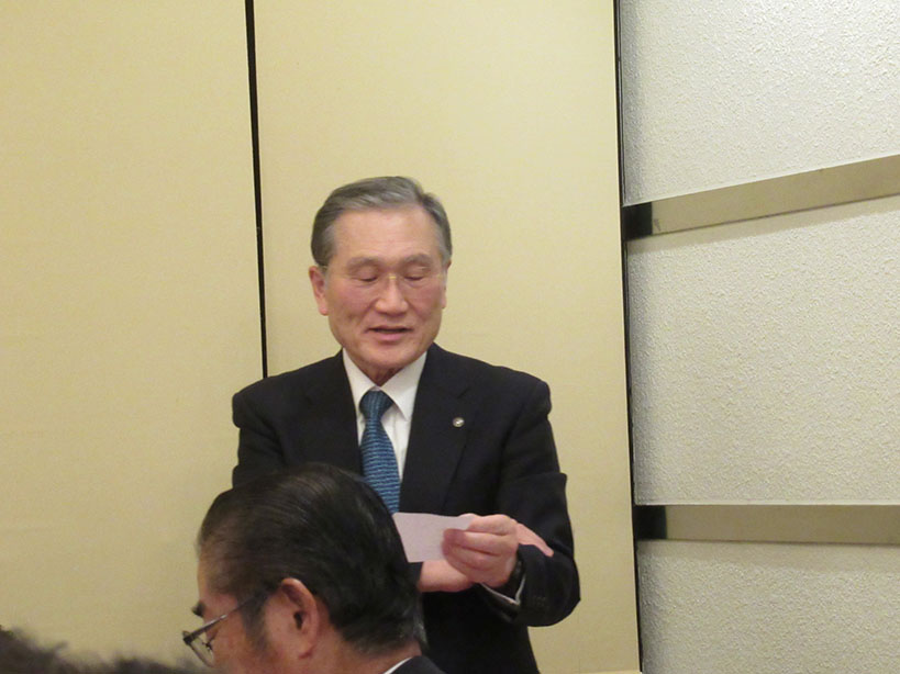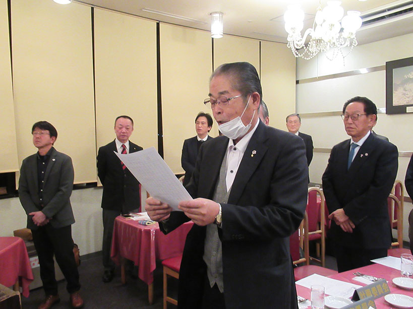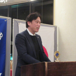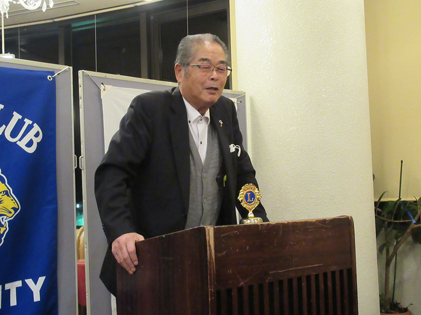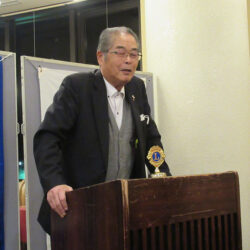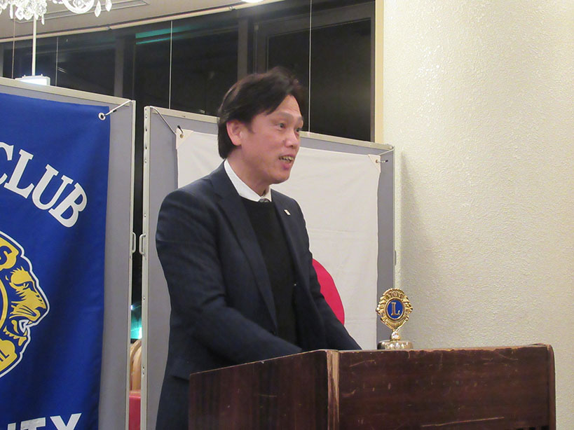 今季最大の寒波到来で冷たい風が吹く中、礒部Lのライオンズの誓いで開会しました。伝達式では礒部伸也Lと礒部直也Lに在籍10年のシェブロンピンが送られました。会食後には丸山副幹事の幹事報告があり、今月のお誕生日をお祝いしました。委員会報告では木口献血委員長から、先日の献血奉仕活動の協力のお礼と五味地区緊急支援・アラート委員長から委員会報告がありました。メンバースピーチでは礒部昇Lが高校卒業から現在の会社設立までの生い立ちをお話されました。最後はテールツイスターの登場と小倉Lの出席報告で閉会となりました。