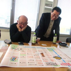 昼食後はゲストに11Rー3Z甲州富士山LCから地区GST委員会副委員長の権守和樹Lが訪問され、当クラブの地区アラート・緊急支援委員会五味委員長とともに委員会セミナー勉強会に向けてゲーム形式のアラートシュミレーションを試してみました。旅行中の災害を想定して架空の町内地図を頼りに配られたカードの情報からどこへ避難したらよいか相談して避難場所を検討していくゲームで、無事避難出来たのは参加者半数でした(笑)。初めての場所の少ない情報の中でいかに速やかに無事避難できるか、真剣に考えさせられる良い機会となりました。